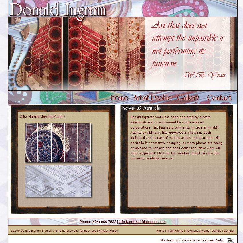 Artist Donald Ingram's eclectic visions have been gracing salvaged glass panes and custom lightboxes for years. Donald wanted to expand his mediums to the internet and inform fans of latest works and exhibitions.