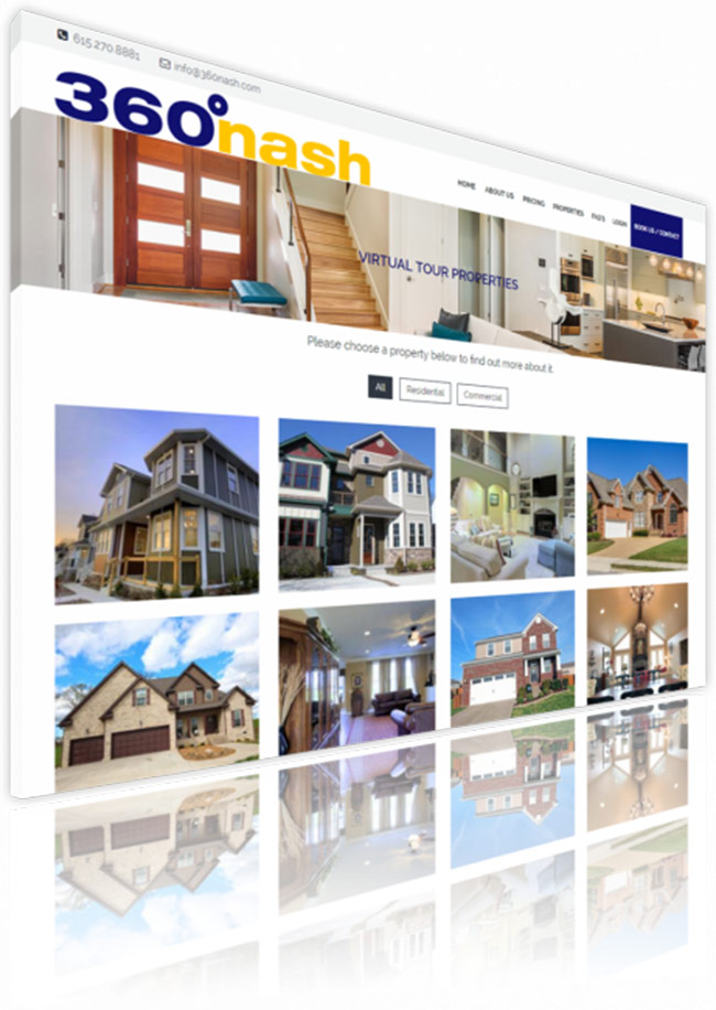 In 2015, 360Nash was founded as a small boutique 3d photography company in Nashville, TN. Since then, 360 Nash has grown by leaps and bounds branching into traditional photography, drone photography and mapping, and 3d modeling. Appeal DEsign was able to create a website that would encompass these services as well as be able to portray work, send emails, and function as a custom tool for the various 360Nash clients throughout the Middle Tennessee area. The custom backend admin tool allows for 360Nash clients to login, and customize their own 1-page property website. Additionally, the site can create video slideshows from the images uploaded to the site.