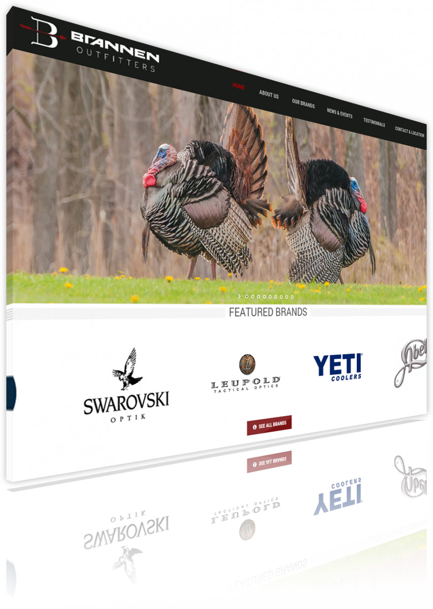 Located in Perry, Ga directly off of the I-75 corridor, Brannen Outfitters sits. ADorning the side of the building are logos of they myriad of brands that Brannen carries. Brannen is uniquely setup to be both a destination and a place to stop in as drivers pass by. Selling everything from apparel, to hunting gear the store is truly a hidden gem. We worked with Brannen in the Perry location to create a site that captured the outdoor spirit. We won't lie, we simply had fun with this client and we think that shows in the design.