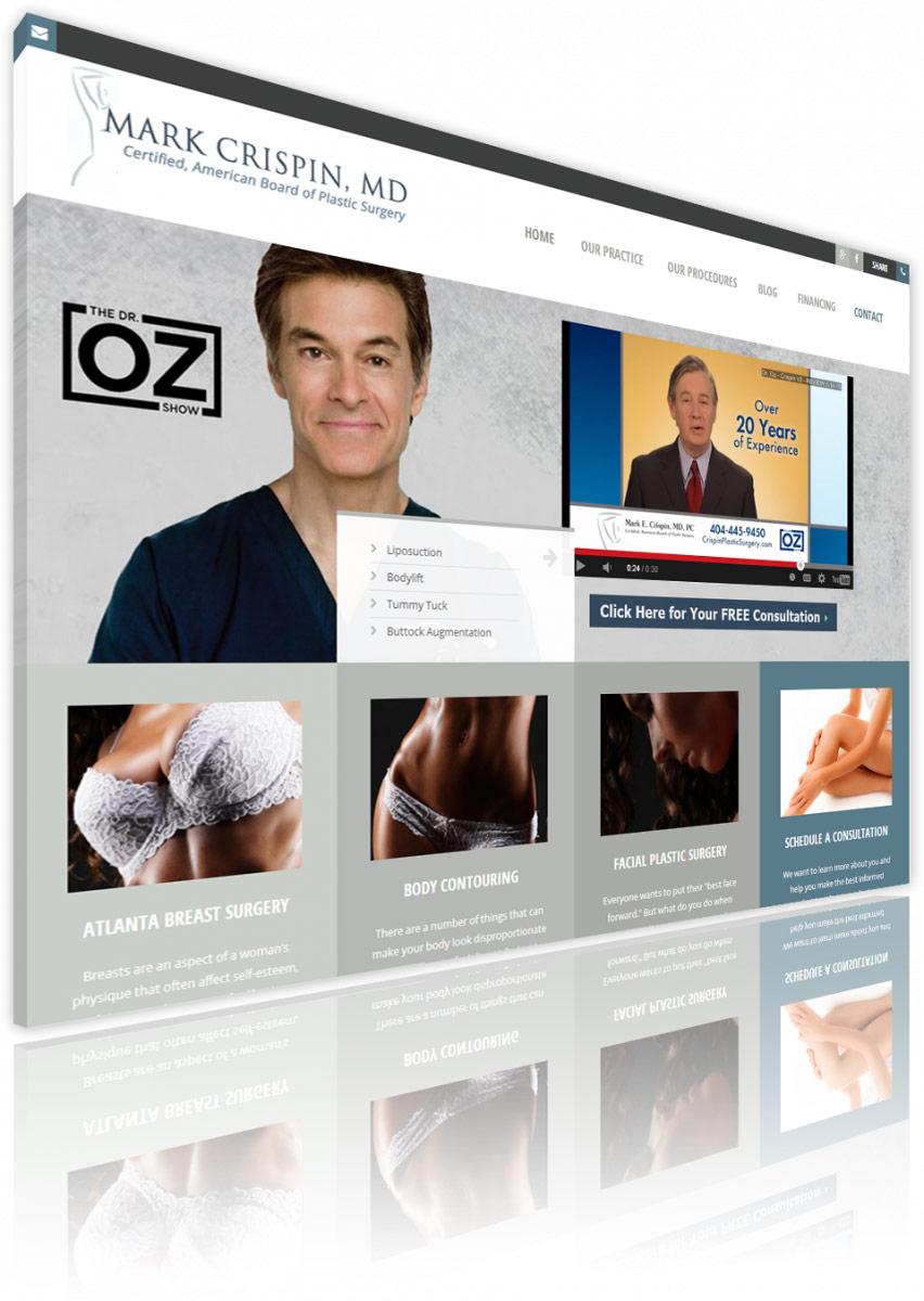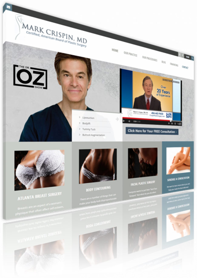 Dr. Mark Crispin, MD runs a very successful plastic surgery practice out of Atlanta. Dr. Crispin and staff approached Appeal Design to create a new web presence and move their existing content of over 90 pages over to a new design. Appeal Design worked the Crispin Plastic Surgery with a goal of creating a web design that was as aesthetically pleasing as Dr. Crispin's work. Another primary objective was to make it simple and easy for patients to get in contact with the office for their consultations. Lastly, portraying Dr. Crispin's work was paramount.