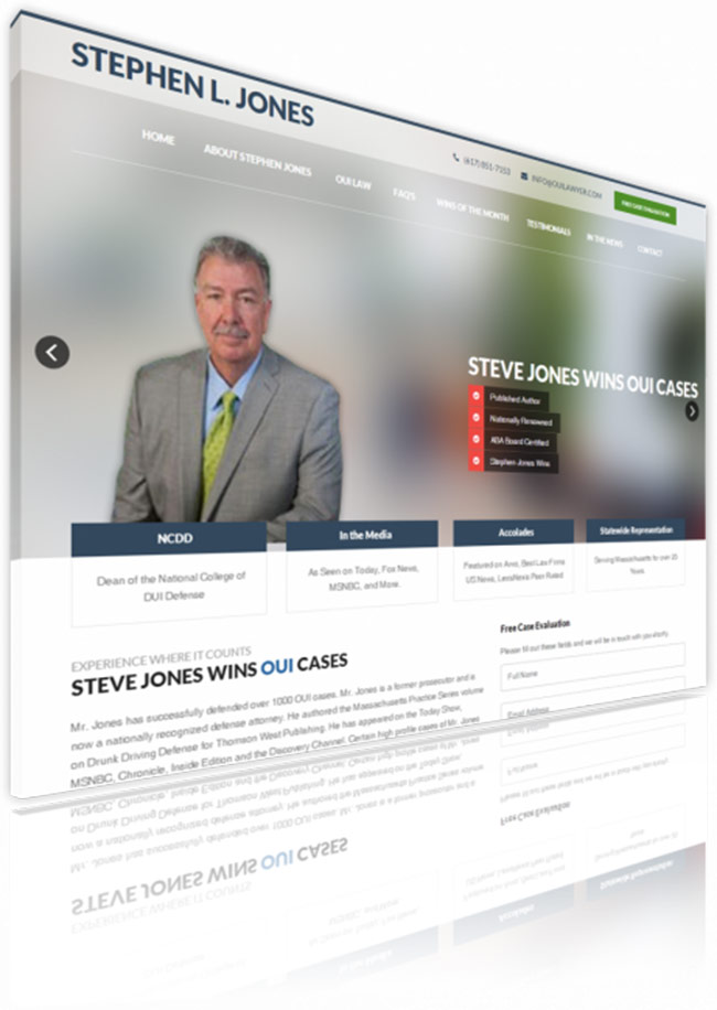 OUI lawyer Stephen Jones pioneered the path for OUI defense in Massachusetts. Appeal Design was approached to create a new web presence for the incoming dean of the National College of DUI Defense (NCDD). Our challange was to incorporate existing conent, create a blog that victorious cases could be shared, make the sire more search engine friendly, and make lead capture and Calls to Action more noticeable.