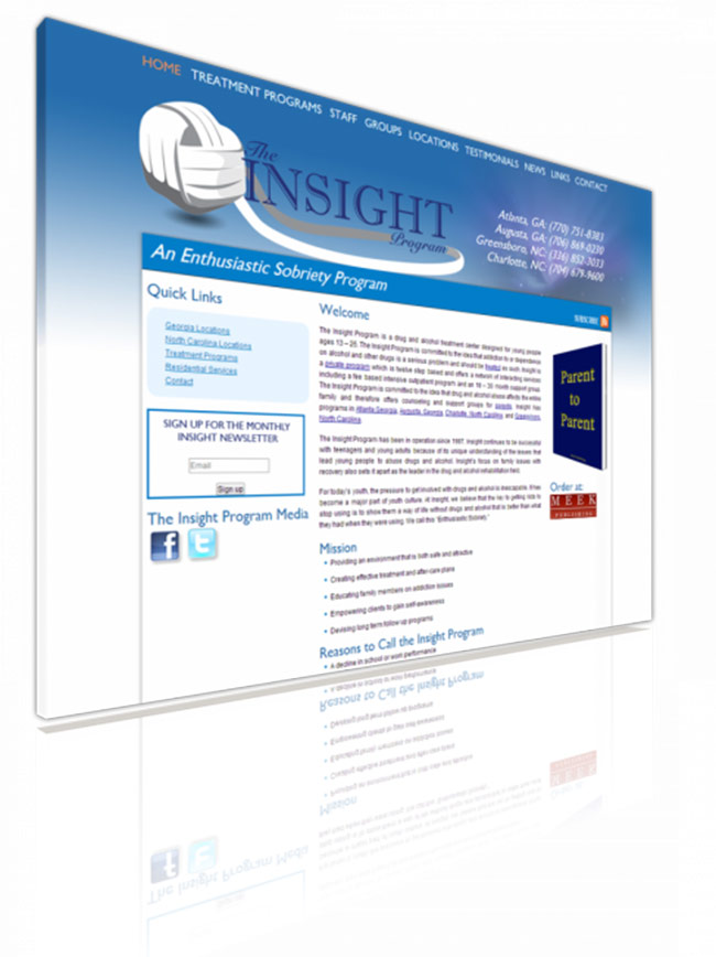 After completing a successful website for client Clint Stonebraker, we were asked to follow up with two more. The Insight Program was one such site where we would showcase the work of this devoted client. Clint's practice focuses on helping teens in need with alcohol and drug counseling. The website announces clinics, events, team members, locations, and most importantly client testimonials.